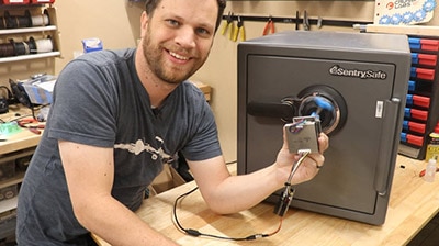This week I'm continuing work on building my life-size version of Rock'em Sock'em ‎robots. I fully realize how ridiculous this project is, but when has that ever stopped me ‎before? In part one of this project I focused on building and prototyping the punching ‎arm mechanism. If you haven't read that article yet, I would suggest going back and ‎starting there. Now that I have a working prototype, it's time to improve it. 3D printing is ‎an excellent method of making so many things, but when you need parts that are very ‎strong and durable, there's no substitute for metal. The first thing I need to do on the ‎prototype is swap out the 3D-printed brackets for metal ones. These brackets connect ‎the aluminum extrusion to the pillow block bearings. I used an online laser-cutting ‎service to get really precise parts. Once I swapped those out, I immediately felt quite a ‎bit more rigidity in the punching arm mechanism.‎