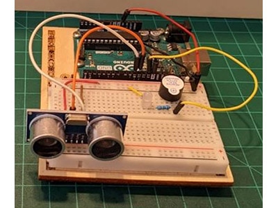 The Ultrasonic Sensor was easy to add on, thanks to the built-in breadboard on the Arduino Shield.