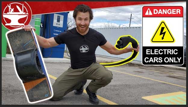 Hacksmith engineered a battery-powered Onewheel roller to be driven by the energy output of a small gas engine, much like the engine from a 2-stroke chainsaw or an R/C car. Using this strategy, the electric motor drive and circuit protection of the Onewheel and its design factor are preserved, but the range is greatly increased.