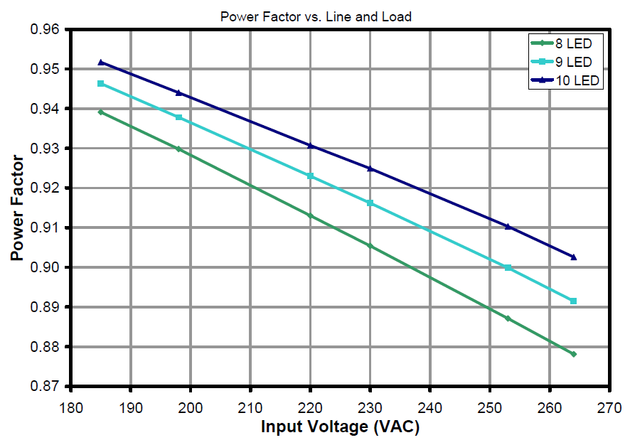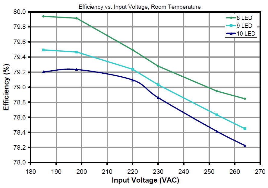 >79%, 185 ~ 232 VAC, 9 LED load >79%, 185 ~ 225 VAC, 10 LED load |